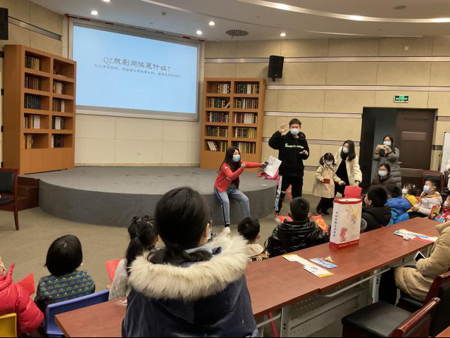 2021年2月2日下午2:30~3:30。在湖北第二师范学院戏剧大篷车队伍的精心策划下,我们第三次去到了湖北省图书馆。举行创意戏剧和春节剪纸的主题活动活动在一楼的三号报告厅举行,并邀请到了20组家庭参与到活动当中。队伍中大学生志愿者耐心周到的筹备与服务,还有这些家庭在活动中满意的笑容,不仅见证了我们戏剧大篷车队伍的成长,也为冬日里的武汉增添了一份暖意。