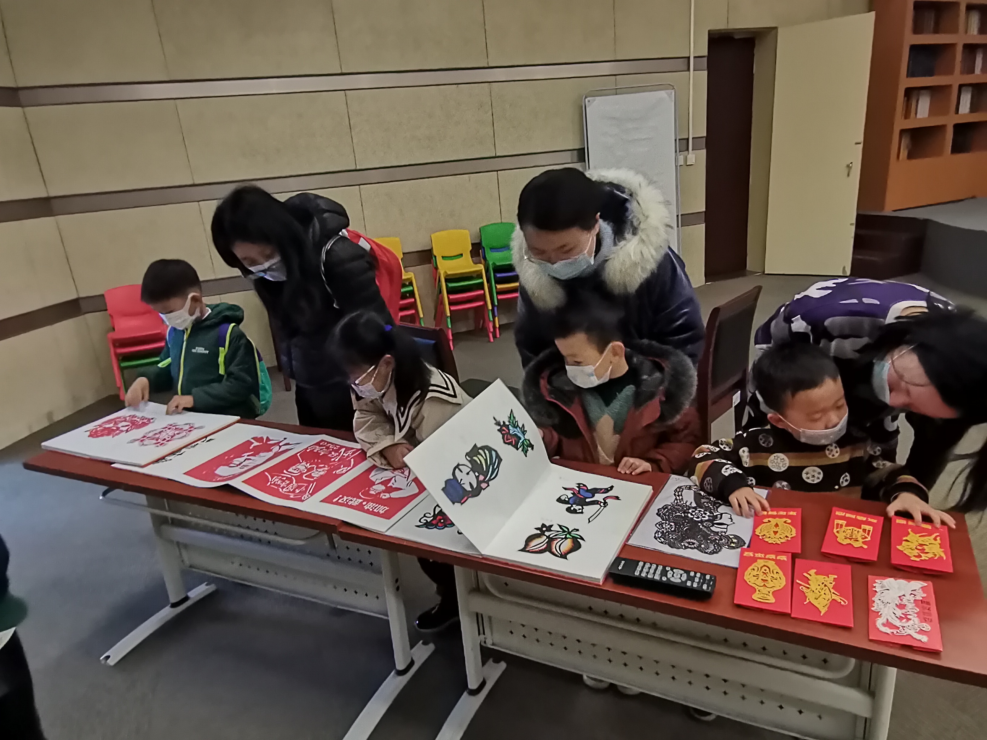 在活动开始前,家长们带着小朋友一起参观了我们团队所带来的剪纸作品,其中有包括有疫情主题剪纸,春节创意红包,剪纸,传统剪纸等作品集。小朋友们和家长大朋友们与我们的剪纸老师戴星鹏进行了简单的交流,让大家更加了解了中国的传统剪纸文化。