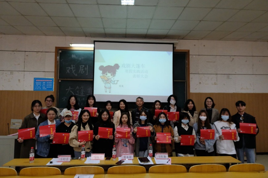 会上,骆夏君老师宣读了戏剧大篷车社会实践优秀表彰名单,领导为获奖团体及个人颁奖并对此次实践工作予以肯定。