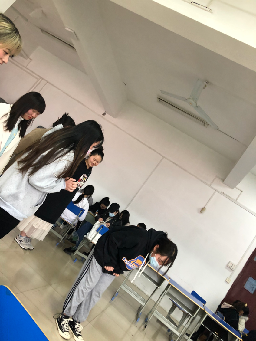“从每次课的开始时,王老师都会让我们用一个词描绘上个星期的感想以及感受,这样可以使我们对我们自己有个认识。当我们说完自己的感受时,老师就会向我们叙述她上个星期干了什么,体会到了什么。我觉得这样的方式拉近了我们彼此的关系。”学生回忆说道。