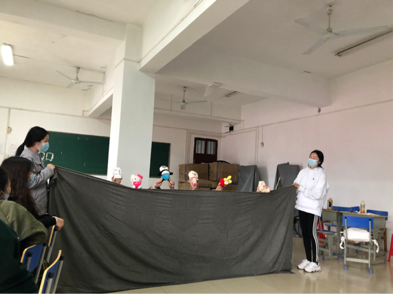 “表演开始了,一个个活灵活现,栩栩如生的玩偶们依次闪亮登场,将故事的情节、起伏表演得很完整。最后我觉得这种即兴的创编可以很好地锻炼我们的思维能力和应变能力,还有团队合作能力、沟通能力、想象力。所以这节课,我受益匪浅。”