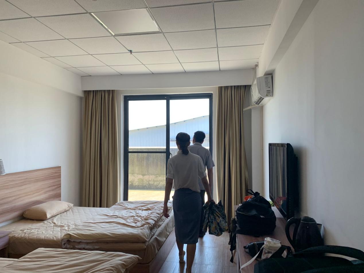 100名志愿者安顿好后,文敏书记、王培喜老师、李京老师、王红艳老师在杏福园区的吴经理的带领下参观了同学们居住的宿舍环境。