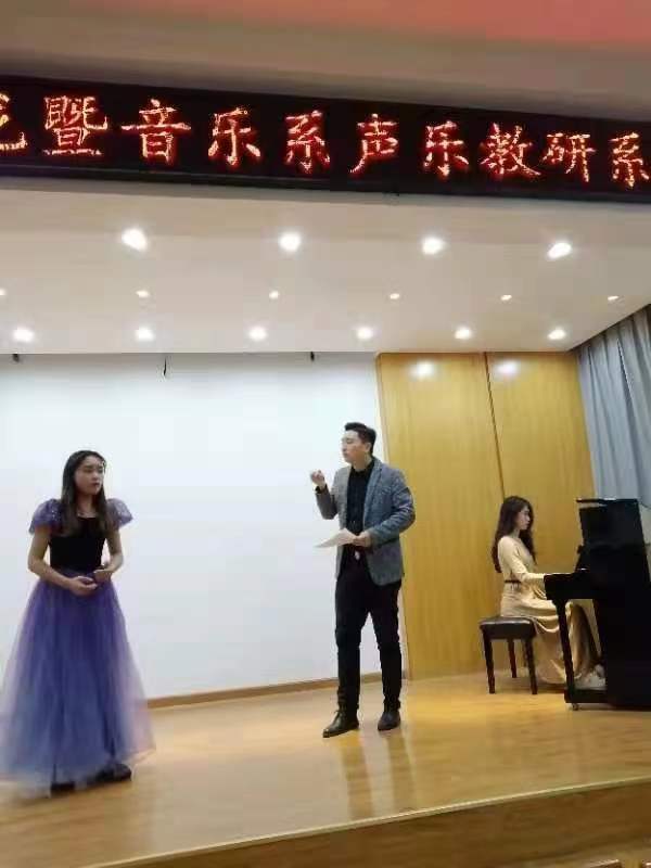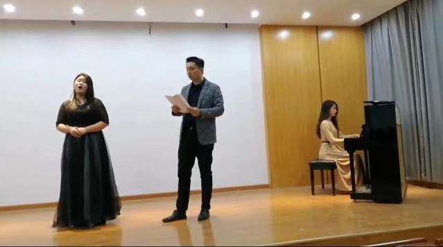 接着是由2019级音乐学宁世民、周静、王金勇、余娜、郭宇晨五位同学所带来的精彩表演,王涵老师对每个人的演唱进行了点评并进行了细致的指导,最终同学们在王涵老师的指导下都有了明显提高。